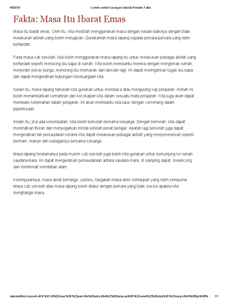 Contoh Contoh Karangan Sekolah Rendah Fakta Masa Itu Ibarat Emas Pdf